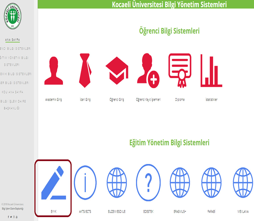 - . Gelen ekranda aşağıdaki "Eğitim Yönetim Bilgi Sistemleriİ" kısmından "EYYK" butonunu tıklayınız.