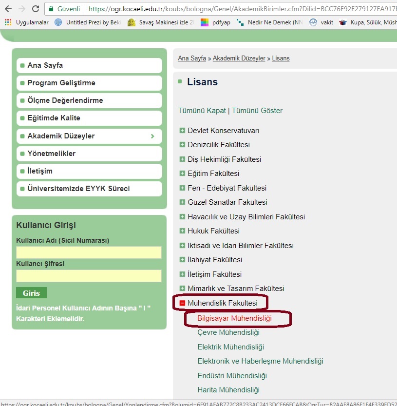 - . Gelen ekranda menüden "Mühendislik Fakültesi" nden "Bilgisayar Mühendisliği" ni seçiniz.
