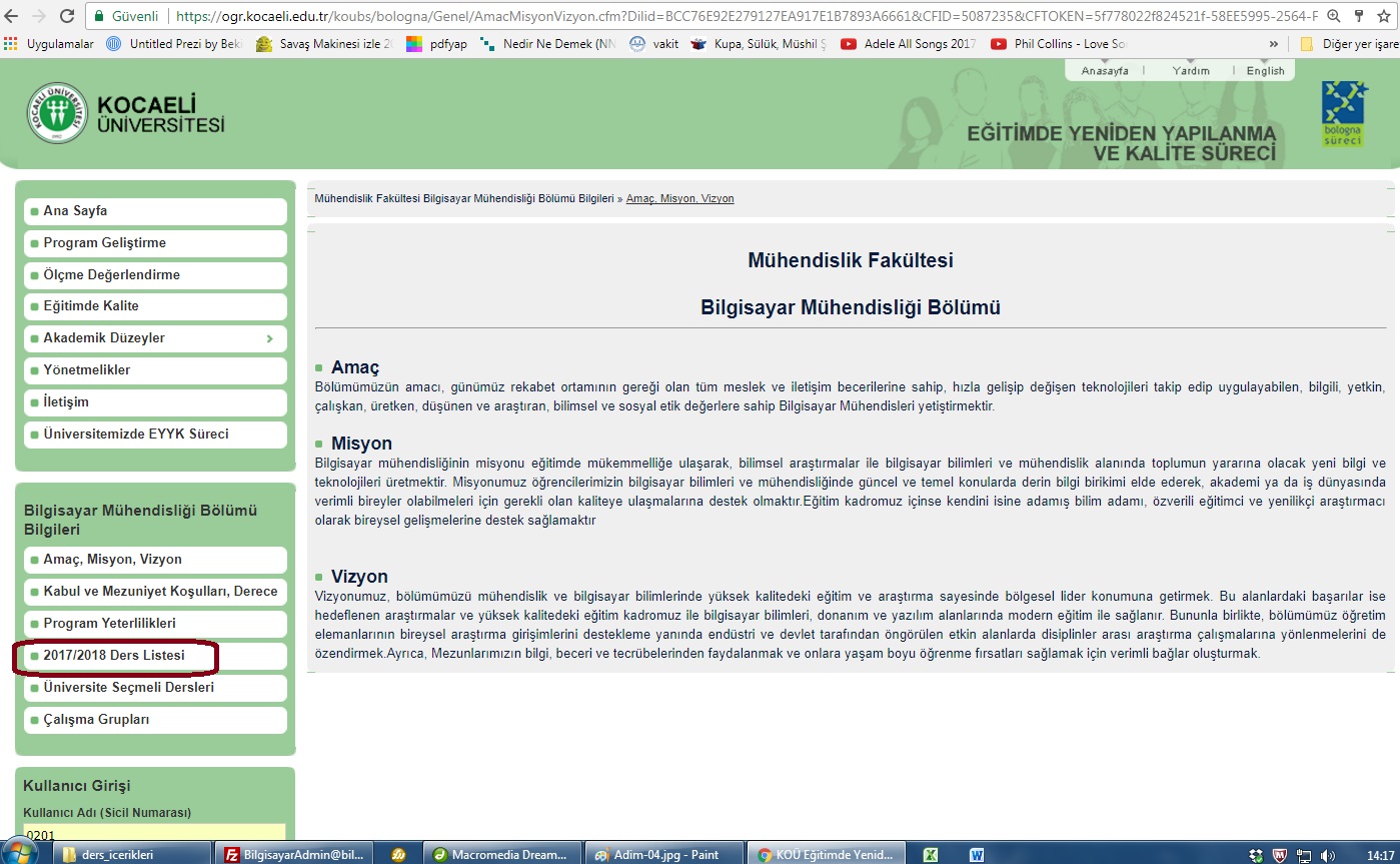 - . Gelen ekrandaki soldaki menüden "2017/2018 Ders Listesi" ni seçiniz.