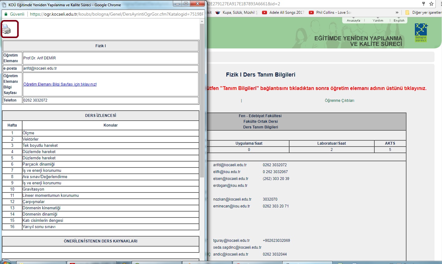 - . Ders İçeriği yazdırılabilir veya pdf olarak kaydedilebilir.