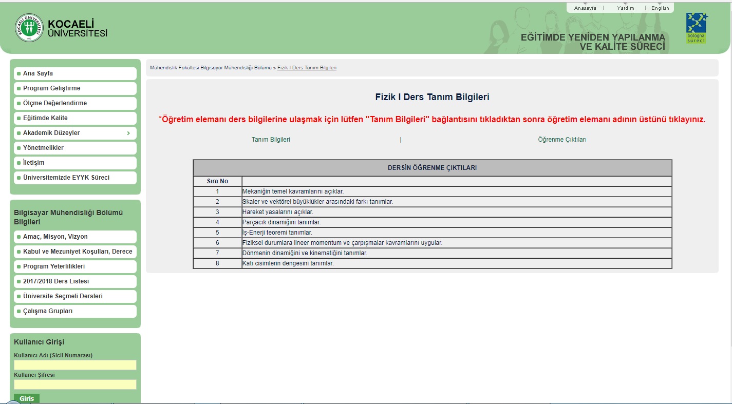 Detaylı Ders İçerikleri'ne ulaşmak için aşağıdaki yol izlenmelidir::